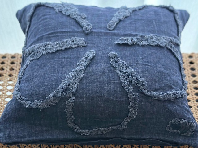 Linne kuddfodral med blomma Jeans blå